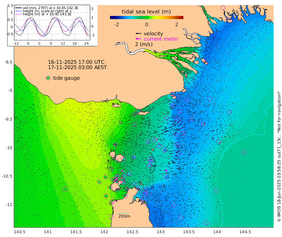 -131cm Daru -137cm Bobo Island -149cm Umuda Island -159cm Goaribari Island -94cm Omati -84cm Meer Island Barge -109cm Bramble Cay -129cm Unnamed Cay -129cm Pearce Cay -126cm Stephens Island -129cm Merrie England Shoals -136cm Mutacomal Reef -115cm Darnley Island Barge -97cm East Cay -121cm Yorke Island Barge -129cm Rennel Island -63cm Ashmore Reef North -130cm Aureed Island -120cm Dungeness Reef -100cm Zagai Island -103cm Yam Island -40cm Dauan Island -46cm Saibai Island -52cm Phipi Reef -98cm Warrior Reef - West -33cm Mabuiag Island Barge -126cm Half Way Island -130cm Coconut Island -130cm Dugong Islet -113cm Poll Island -116cm Kirkcaldie Reef -108cm Suarji Island -103cm Sue Islet 3cm Hawkesbury Island -84cm Alert Patches -95cm Twin Island -1cm Badu Island -87cm St Pauls (Moa Island) -31cm Kubin (Moa Island) -63cm Ince Point -48cm Thursday Island -51cm Nardana Patches -31cm Turtle Head -23cm Round Island -2cm Goods Island 19cm Booby Island 2cm White Rocks Area 9cm Carpentaria -80cm Papou Point -11cm Bampfield Head 26cm Crab Island 8cm Red Wallis Island -27cm Packe Island -145cm Harrington Reef -13cm Herald Camp -22cm Sharp Point -25cm Red Island Point -63cm Possession Island -96cm Alpha Rock -115cm Frederick Point -135cm Wyborn Reef Light -131cm Tetley Island -80cm Triangle Reef -130cm Turtle Head Island -88cm Maclennan Cay -121cm Mcsweeny Reef -110cm Collette Reef 36cm Vrilya Point