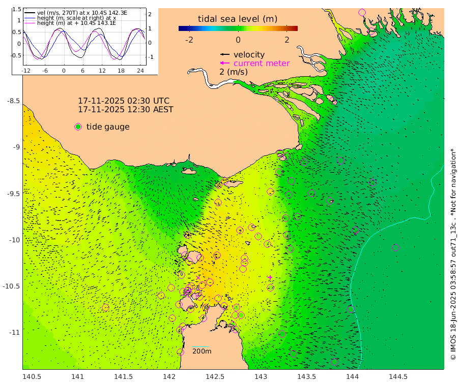 25cm Daru 17cm Bobo Island 5cm Umuda Island 4cm Goaribari Island 145cm Omati -22cm Meer Island Barge -25cm Bramble Cay 2cm Unnamed Cay 5cm Pearce Cay -4cm Stephens Island -11cm Merrie England Shoals 16cm Mutacomal Reef -3cm Darnley Island Barge -29cm East Cay 16cm Yorke Island Barge 16cm Rennel Island -40cm Ashmore Reef North 24cm Aureed Island 44cm Dungeness Reef 80cm Zagai Island 79cm Yam Island 95cm Dauan Island 92cm Saibai Island 90cm Phipi Reef 78cm Warrior Reef - West 88cm Mabuiag Island Barge 19cm Half Way Island 42cm Coconut Island 35cm Dugong Islet 61cm Poll Island 59cm Kirkcaldie Reef 99cm Suarji Island 63cm Sue Islet 54cm Hawkesbury Island 84cm Alert Patches 82cm Twin Island 70cm Badu Island 97cm St Pauls (Moa Island) 68cm Kubin (Moa Island) 84cm Ince Point 84cm Thursday Island 85cm Nardana Patches 73cm Turtle Head 67cm Round Island 61cm Goods Island 64cm Booby Island 63cm White Rocks Area 76cm Carpentaria 82cm Papou Point 78cm Bampfield Head 50cm Crab Island 59cm Red Wallis Island 59cm Packe Island 41cm Harrington Reef 68cm Herald Camp 33cm Sharp Point 59cm Red Island Point 79cm Possession Island 66cm Alpha Rock 62cm Frederick Point 26cm Wyborn Reef Light 35cm Tetley Island -10cm Triangle Reef 30cm Turtle Head Island -13cm Maclennan Cay 3cm Mcsweeny Reef -6cm Collette Reef 46cm Vrilya Point