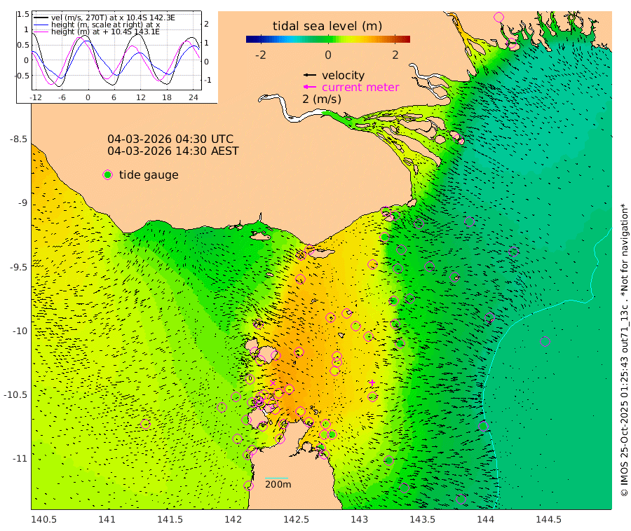 30cm Daru 14cm Bobo Island -5cm Umuda Island 9cm Goaribari Island 200cm Omati -38cm Meer Island Barge -39cm Bramble Cay -10cm Unnamed Cay -5cm Pearce Cay -15cm Stephens Island -22cm Merrie England Shoals 15cm Mutacomal Reef -13cm Darnley Island Barge -44cm East Cay 11cm Yorke Island Barge 10cm Rennel Island -56cm Ashmore Reef North 16cm Aureed Island 40cm Dungeness Reef 88cm Zagai Island 91cm Yam Island 127cm Dauan Island 123cm Saibai Island 110cm Phipi Reef 102cm Warrior Reef - West 96cm Mabuiag Island Barge 14cm Half Way Island 35cm Coconut Island 32cm Dugong Islet 62cm Poll Island 64cm Kirkcaldie Reef 82cm Suarji Island 71cm Sue Islet 56cm Hawkesbury Island 80cm Alert Patches 81cm Twin Island 59cm Badu Island 101cm St Pauls (Moa Island) 67cm Kubin (Moa Island) 83cm Ince Point 78cm Thursday Island 80cm Nardana Patches 63cm Turtle Head 53cm Round Island 38cm Goods Island 36cm Booby Island 23cm White Rocks Area 49cm Carpentaria 83cm Papou Point 25cm Bampfield Head 40cm Crab Island 43cm Red Wallis Island 55cm Packe Island 34cm Harrington Reef 62cm Herald Camp 43cm Sharp Point 61cm Red Island Point 67cm Possession Island 70cm Alpha Rock 62cm Frederick Point 22cm Wyborn Reef Light 35cm Tetley Island -19cm Triangle Reef 20cm Turtle Head Island -29cm Maclennan Cay -6cm Mcsweeny Reef -16cm Collette Reef 44cm Vrilya Point
