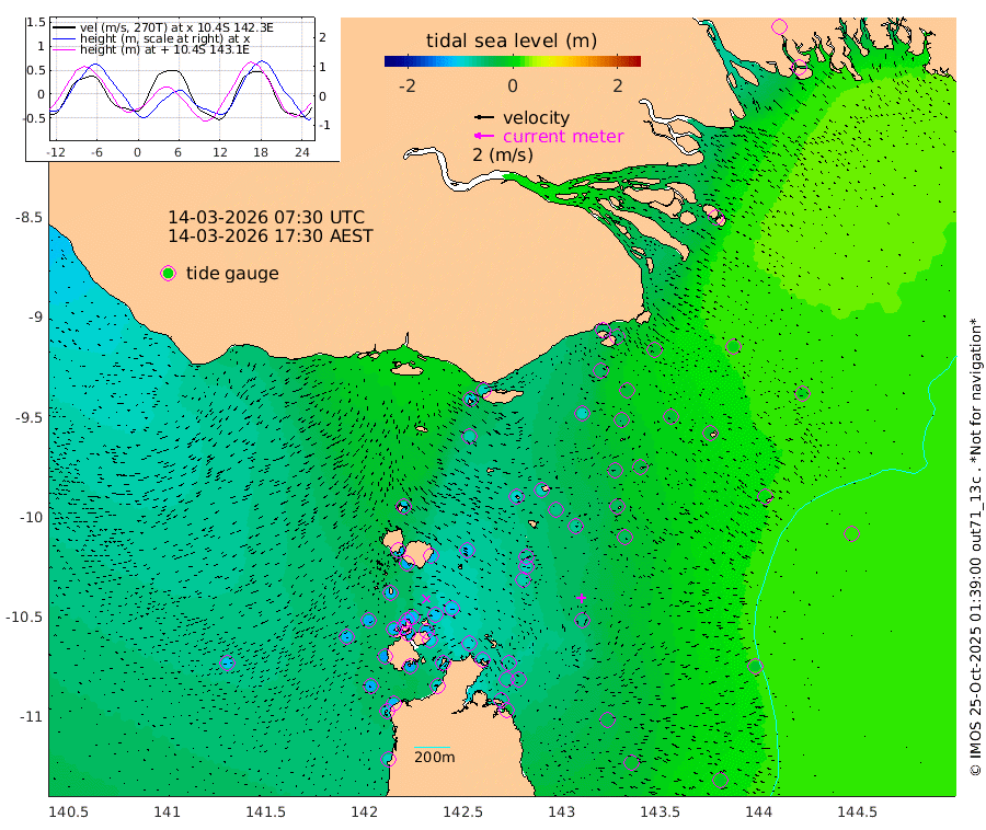 -53cm Daru -49cm Bobo Island -37cm Umuda Island -30cm Goaribari Island -128cm Omati 1cm Meer Island Barge -7cm Bramble Cay -29cm Unnamed Cay -46cm Pearce Cay -28cm Stephens Island -22cm Merrie England Shoals -49cm Mutacomal Reef -17cm Darnley Island Barge -1cm East Cay -35cm Yorke Island Barge -47cm Rennel Island 15cm Ashmore Reef North -51cm Aureed Island -66cm Dungeness Reef -85cm Zagai Island -90cm Yam Island -98cm Dauan Island -85cm Saibai Island -82cm Phipi Reef -89cm Warrior Reef - West -101cm Mabuiag Island Barge -49cm Half Way Island -71cm Coconut Island -61cm Dugong Islet -86cm Poll Island -76cm Kirkcaldie Reef -111cm Suarji Island -73cm Sue Islet -117cm Hawkesbury Island -107cm Alert Patches -110cm Twin Island -116cm Badu Island -119cm St Pauls (Moa Island) -122cm Kubin (Moa Island) -114cm Ince Point -118cm Thursday Island -117cm Nardana Patches -114cm Turtle Head -112cm Round Island -115cm Goods Island -119cm Booby Island -122cm White Rocks Area -110cm Carpentaria -102cm Papou Point -129cm Bampfield Head -93cm Crab Island -123cm Red Wallis Island -126cm Packe Island -75cm Harrington Reef -117cm Herald Camp -28cm Sharp Point -91cm Red Island Point -104cm Possession Island -93cm Alpha Rock -95cm Frederick Point -65cm Wyborn Reef Light -74cm Tetley Island -19cm Triangle Reef -69cm Turtle Head Island -11cm Maclennan Cay -34cm Mcsweeny Reef -19cm Collette Reef -84cm Vrilya Point