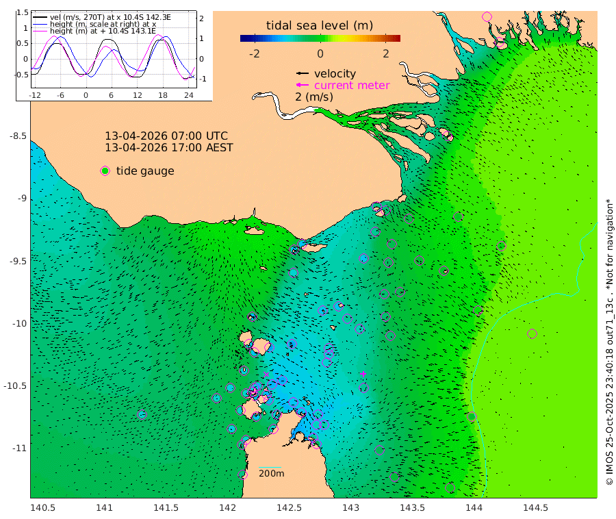 -65cm Daru -60cm Bobo Island -45cm Umuda Island -47cm Goaribari Island -171cm Omati 8cm Meer Island Barge -10cm Bramble Cay -38cm Unnamed Cay -47cm Pearce Cay -30cm Stephens Island -32cm Merrie England Shoals -68cm Mutacomal Reef -19cm Darnley Island Barge 3cm East Cay -42cm Yorke Island Barge -54cm Rennel Island 25cm Ashmore Reef North -58cm Aureed Island -73cm Dungeness Reef -106cm Zagai Island -112cm Yam Island -111cm Dauan Island -112cm Saibai Island -94cm Phipi Reef -110cm Warrior Reef - West -114cm Mabuiag Island Barge -54cm Half Way Island -84cm Coconut Island -70cm Dugong Islet -99cm Poll Island -91cm Kirkcaldie Reef -123cm Suarji Island -91cm Sue Islet -101cm Hawkesbury Island -115cm Alert Patches -121cm Twin Island -109cm Badu Island -130cm St Pauls (Moa Island) -111cm Kubin (Moa Island) -119cm Ince Point -117cm Thursday Island -118cm Nardana Patches -105cm Turtle Head -96cm Round Island -95cm Goods Island -93cm Booby Island -101cm White Rocks Area -94cm Carpentaria -114cm Papou Point -96cm Bampfield Head -72cm Crab Island -103cm Red Wallis Island -111cm Packe Island -85cm Harrington Reef -94cm Herald Camp -38cm Sharp Point -93cm Red Island Point -99cm Possession Island -110cm Alpha Rock -106cm Frederick Point -80cm Wyborn Reef Light -90cm Tetley Island -17cm Triangle Reef -69cm Turtle Head Island -6cm Maclennan Cay -39cm Mcsweeny Reef -24cm Collette Reef -63cm Vrilya Point