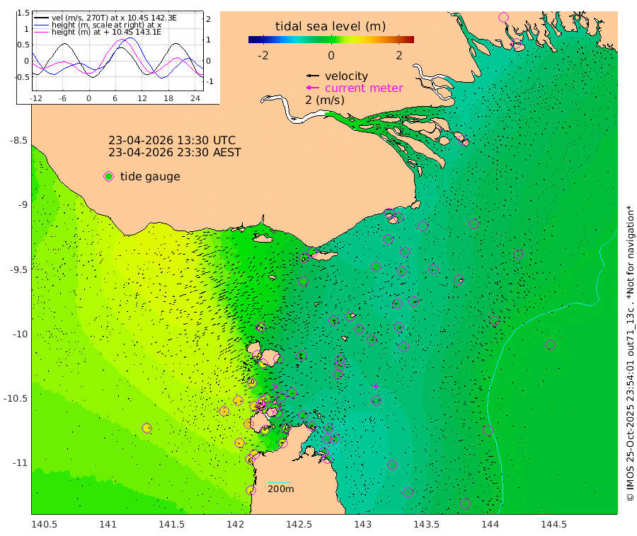 -49cm Daru -40cm Bobo Island -68cm Umuda Island -84cm Goaribari Island -73cm Omati -30cm Meer Island Barge -38cm Bramble Cay -50cm Unnamed Cay -38cm Pearce Cay -47cm Stephens Island -55cm Merrie England Shoals -52cm Mutacomal Reef -47cm Darnley Island Barge -30cm East Cay -47cm Yorke Island Barge -45cm Rennel Island -24cm Ashmore Reef North -44cm Aureed Island -39cm Dungeness Reef -14cm Zagai Island -15cm Yam Island 11cm Dauan Island 10cm Saibai Island -4cm Phipi Reef -22cm Warrior Reef - West 32cm Mabuiag Island Barge -48cm Half Way Island -31cm Coconut Island -50cm Dugong Islet -26cm Poll Island -34cm Kirkcaldie Reef -14cm Suarji Island -31cm Sue Islet 94cm Hawkesbury Island -5cm Alert Patches -4cm Twin Island 89cm Badu Island -1cm St Pauls (Moa Island) 64cm Kubin (Moa Island) 18cm Ince Point 33cm Thursday Island 29cm Nardana Patches 48cm Turtle Head 75cm Round Island 85cm Goods Island 100cm Booby Island 96cm White Rocks Area 80cm Carpentaria 14cm Papou Point 117cm Bampfield Head 86cm Crab Island 91cm Red Wallis Island 64cm Packe Island -47cm Harrington Reef 83cm Herald Camp -12cm Sharp Point 53cm Red Island Point 28cm Possession Island -15cm Alpha Rock -21cm Frederick Point -36cm Wyborn Reef Light -31cm Tetley Island -20cm Triangle Reef -29cm Turtle Head Island -27cm Maclennan Cay -47cm Mcsweeny Reef -46cm Collette Reef 71cm Vrilya Point