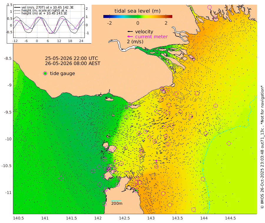 105cm Daru 106cm Bobo Island 123cm Umuda Island 140cm Goaribari Island 92cm Omati 61cm Meer Island Barge 84cm Bramble Cay 100cm Unnamed Cay 102cm Pearce Cay 100cm Stephens Island 104cm Merrie England Shoals 110cm Mutacomal Reef 90cm Darnley Island Barge 73cm East Cay 95cm Yorke Island Barge 101cm Rennel Island 47cm Ashmore Reef North 98cm Aureed Island 93cm Dungeness Reef 66cm Zagai Island 80cm Yam Island 22cm Dauan Island 25cm Saibai Island 35cm Phipi Reef 73cm Warrior Reef - West 16cm Mabuiag Island Barge 106cm Half Way Island 94cm Coconut Island 108cm Dugong Islet 87cm Poll Island 97cm Kirkcaldie Reef 63cm Suarji Island 81cm Sue Islet 5cm Hawkesbury Island 59cm Alert Patches 70cm Twin Island -12cm Badu Island 64cm St Pauls (Moa Island) 23cm Kubin (Moa Island) 44cm Ince Point 32cm Thursday Island 34cm Nardana Patches 15cm Turtle Head 7cm Round Island -11cm Goods Island -27cm Booby Island -20cm White Rocks Area -22cm Carpentaria 58cm Papou Point -30cm Bampfield Head -23cm Crab Island -12cm Red Wallis Island 21cm Packe Island 116cm Harrington Reef 8cm Herald Camp 21cm Sharp Point 24cm Red Island Point 39cm Possession Island 71cm Alpha Rock 89cm Frederick Point 102cm Wyborn Reef Light 100cm Tetley Island 57cm Triangle Reef 106cm Turtle Head Island 65cm Maclennan Cay 94cm Mcsweeny Reef 84cm Collette Reef -19cm Vrilya Point