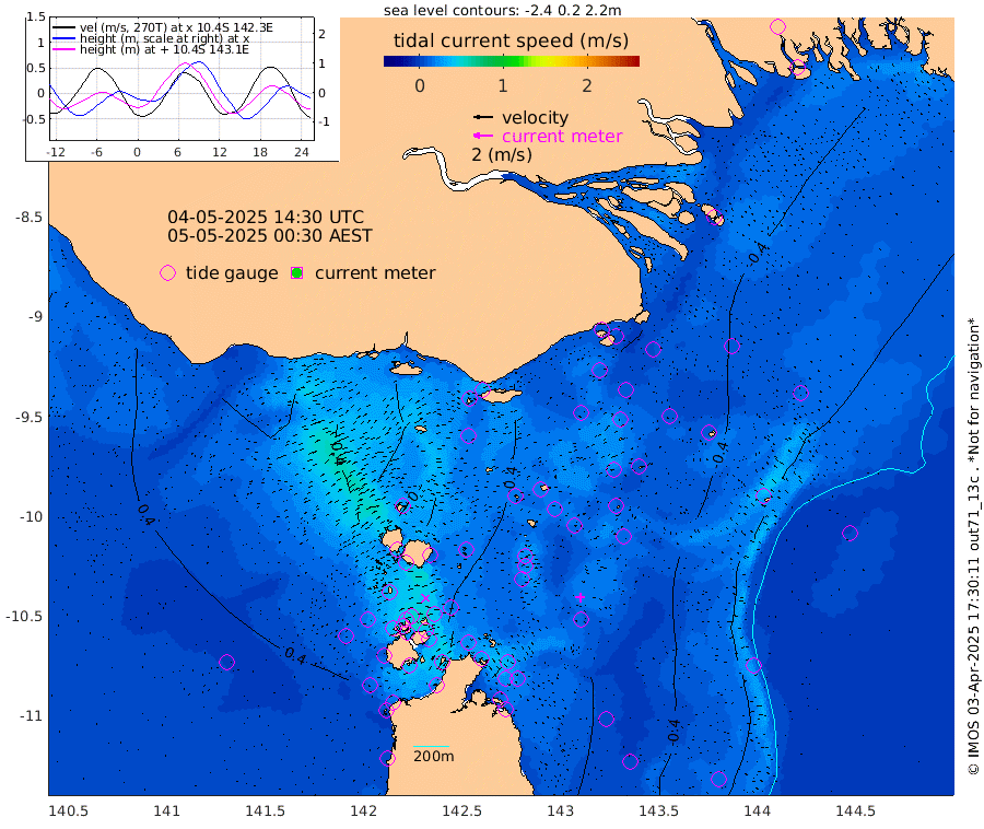 -43cm Daru -40cm Bobo Island -71cm Umuda Island -83cm Goaribari Island -61cm Omati -24cm Meer Island Barge -34cm Bramble Cay -41cm Unnamed Cay -41cm Pearce Cay -45cm Stephens Island -49cm Merrie England Shoals -44cm Mutacomal Reef -40cm Darnley Island Barge -29cm East Cay -40cm Yorke Island Barge -43cm Rennel Island -20cm Ashmore Reef North -42cm Aureed Island -35cm Dungeness Reef -4cm Zagai Island -6cm Yam Island 32cm Dauan Island 33cm Saibai Island 12cm Phipi Reef -10cm Warrior Reef - West 43cm Mabuiag Island Barge -46cm Half Way Island -30cm Coconut Island -46cm Dugong Islet -22cm Poll Island -32cm Kirkcaldie Reef -9cm Suarji Island -20cm Sue Islet 96cm Hawkesbury Island 0cm Alert Patches -1cm Twin Island 89cm Badu Island 4cm St Pauls (Moa Island) 66cm Kubin (Moa Island) 22cm Ince Point 35cm Thursday Island 33cm Nardana Patches 50cm Turtle Head 81cm Round Island 84cm Goods Island 98cm Booby Island 90cm White Rocks Area 81cm Carpentaria 14cm Papou Point 123cm Bampfield Head 79cm Crab Island 86cm Red Wallis Island 64cm Packe Island -50cm Harrington Reef 93cm Herald Camp -8cm Sharp Point 45cm Red Island Point 31cm Possession Island -6cm Alpha Rock -20cm Frederick Point -30cm Wyborn Reef Light -24cm Tetley Island -14cm Triangle Reef -30cm Turtle Head Island -23cm Maclennan Cay -43cm Mcsweeny Reef -39cm Collette Reef 65cm Vrilya Point