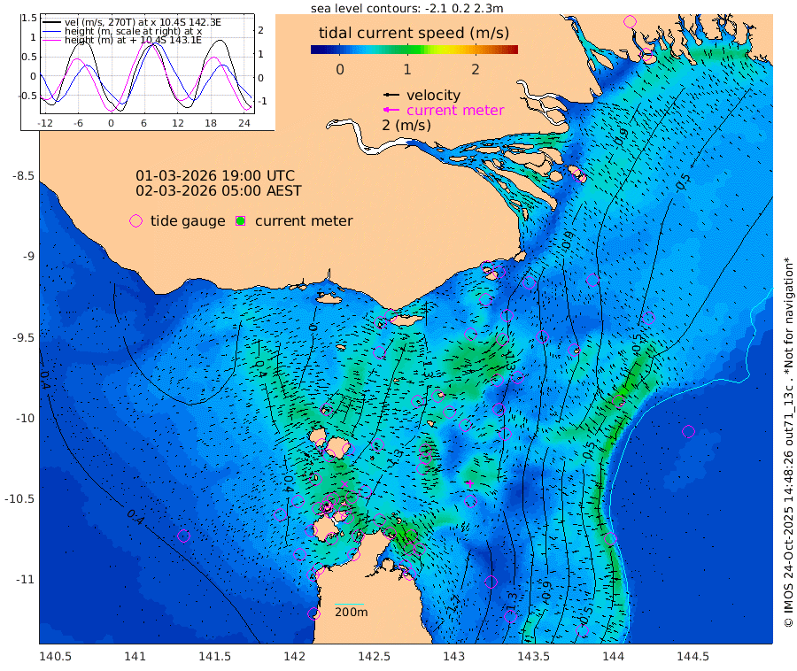 -155cm Daru -145cm Bobo Island -168cm Umuda Island -183cm Goaribari Island -221cm Omati -49cm Meer Island Barge -85cm Bramble Cay -124cm Unnamed Cay -133cm Pearce Cay -117cm Stephens Island -124cm Merrie England Shoals -150cm Mutacomal Reef -100cm Darnley Island Barge -60cm East Cay -123cm Yorke Island Barge -138cm Rennel Island -19cm Ashmore Reef North -137cm Aureed Island -148cm Dungeness Reef -137cm Zagai Island -138cm Yam Island -100cm Dauan Island -84cm Saibai Island -129cm Phipi Reef -150cm Warrior Reef - West -58cm Mabuiag Island Barge -136cm Half Way Island -148cm Coconut Island -147cm Dugong Islet -145cm Poll Island -150cm Kirkcaldie Reef -145cm Suarji Island -132cm Sue Islet 32cm Hawkesbury Island -120cm Alert Patches -125cm Twin Island 8cm Badu Island -128cm St Pauls (Moa Island) -19cm Kubin (Moa Island) -85cm Ince Point -60cm Thursday Island -67cm Nardana Patches -33cm Turtle Head 2cm Round Island 30cm Goods Island 70cm Booby Island 50cm White Rocks Area 87cm Carpentaria -103cm Papou Point 75cm Bampfield Head 53cm Crab Island 52cm Red Wallis Island -6cm Packe Island -165cm Harrington Reef 36cm Herald Camp -47cm Sharp Point -29cm Red Island Point -72cm Possession Island -116cm Alpha Rock -141cm Frederick Point -145cm Wyborn Reef Light -145cm Tetley Island -54cm Triangle Reef -142cm Turtle Head Island -54cm Maclennan Cay -118cm Mcsweeny Reef -102cm Collette Reef 63cm Vrilya Point
