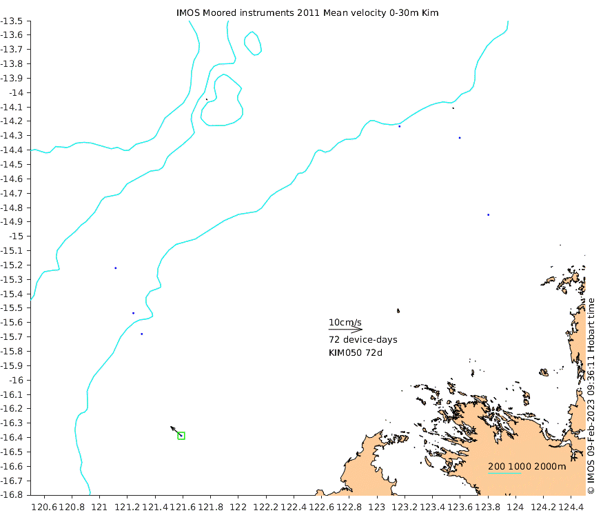 These maps show some basic analyses of the velocity data: mean and sub-tidal variance for several layers and time-windows, and tidal harmonics for the depth-average velocity using the whole record. Click through to see more detailed plots of the selected dataset or to download those data from the AODN thredds server.