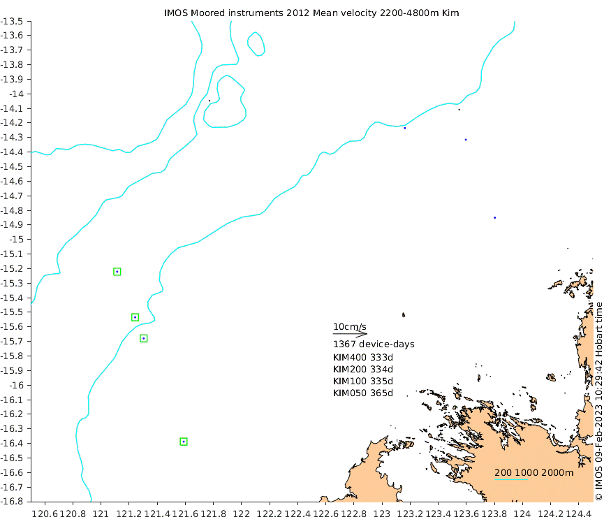 These maps show some basic analyses of the velocity data: mean and sub-tidal variance for several layers and time-windows, and tidal harmonics for the depth-average velocity using the whole record. Click through to see more detailed plots of the selected dataset or to download those data from the AODN thredds server.