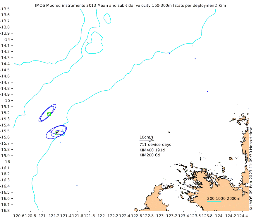These maps show some basic analyses of the velocity data: mean and sub-tidal variance for several layers and time-windows, and tidal harmonics for the depth-average velocity using the whole record. Click through to see more detailed plots of the selected dataset or to download those data from the AODN thredds server.