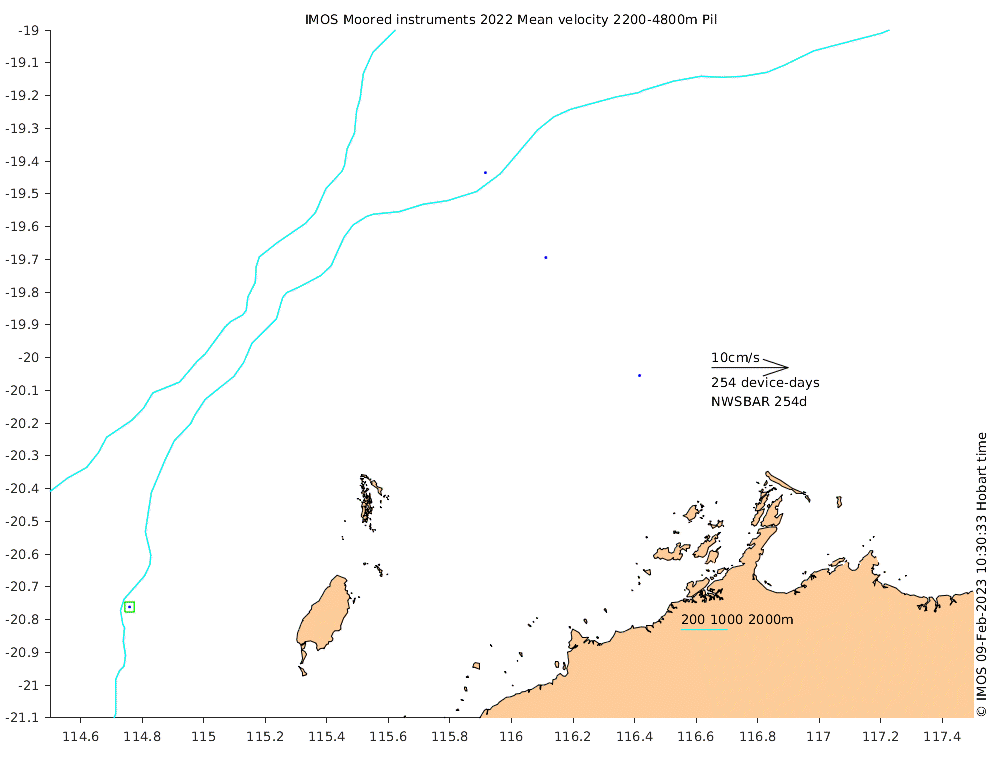 These maps show some basic analyses of the velocity data: mean and sub-tidal variance for several layers and time-windows, and tidal harmonics for the depth-average velocity using the whole record. Click through to see more detailed plots of the selected dataset or to download those data from the AODN thredds server.