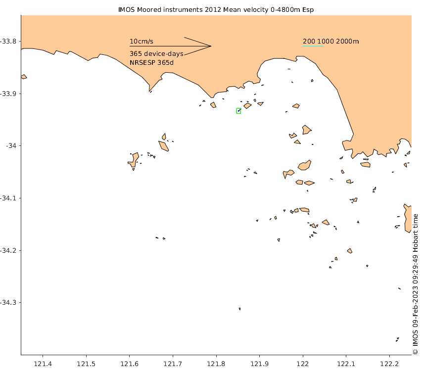 These maps show some basic analyses of the velocity data: mean and sub-tidal variance for several layers and time-windows, and tidal harmonics for the depth-average velocity using the whole record. Click through to see more detailed plots of the selected dataset or to download those data from the AODN thredds server.