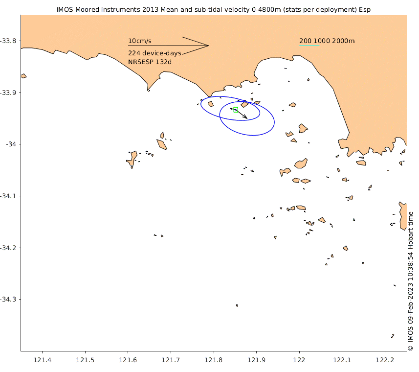 These maps show some basic analyses of the velocity data: mean and sub-tidal variance for several layers and time-windows, and tidal harmonics for the depth-average velocity using the whole record. Click through to see more detailed plots of the selected dataset or to download those data from the AODN thredds server.