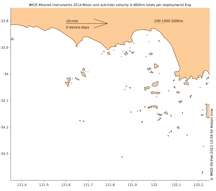 These maps show some basic analyses of the velocity data: mean and sub-tidal variance for several layers and time-windows, and tidal harmonics for the depth-average velocity using the whole record. Click through to see more detailed plots of the selected dataset or to download those data from the AODN thredds server.