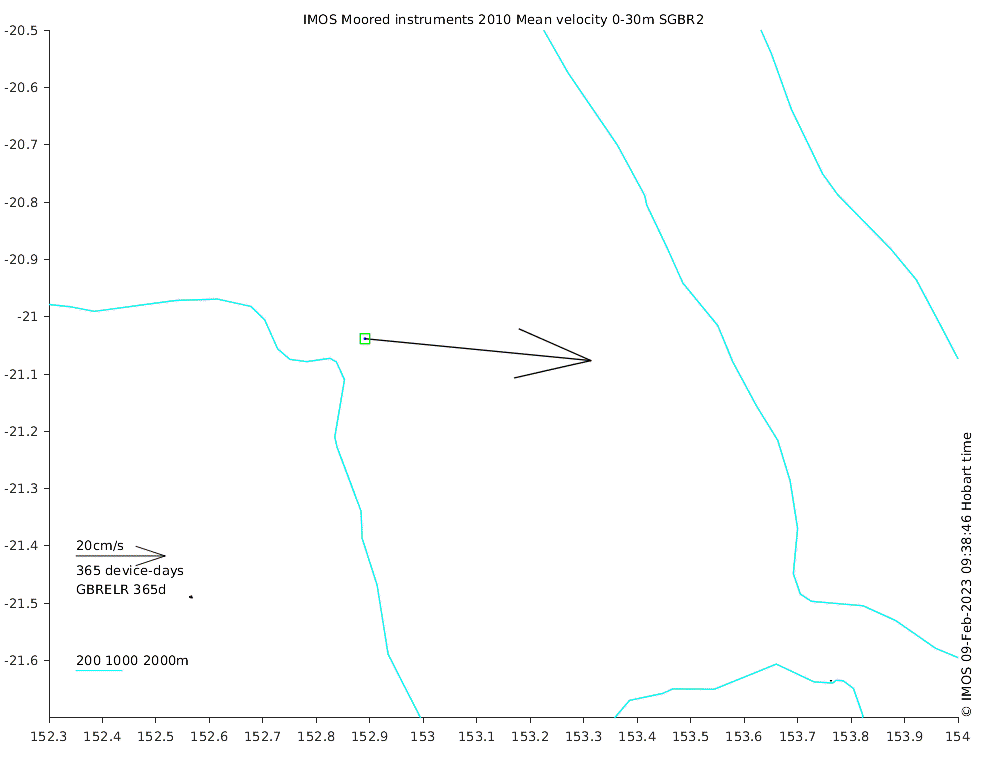 These maps show some basic analyses of the velocity data: mean and sub-tidal variance for several layers and time-windows, and tidal harmonics for the depth-average velocity using the whole record. Click through to see more detailed plots of the selected dataset or to download those data from the AODN thredds server.