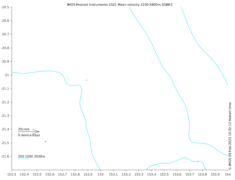These maps show some basic analyses of the velocity data: mean and sub-tidal variance for several layers and time-windows, and tidal harmonics for the depth-average velocity using the whole record. Click through to see more detailed plots of the selected dataset or to download those data from the AODN thredds server.