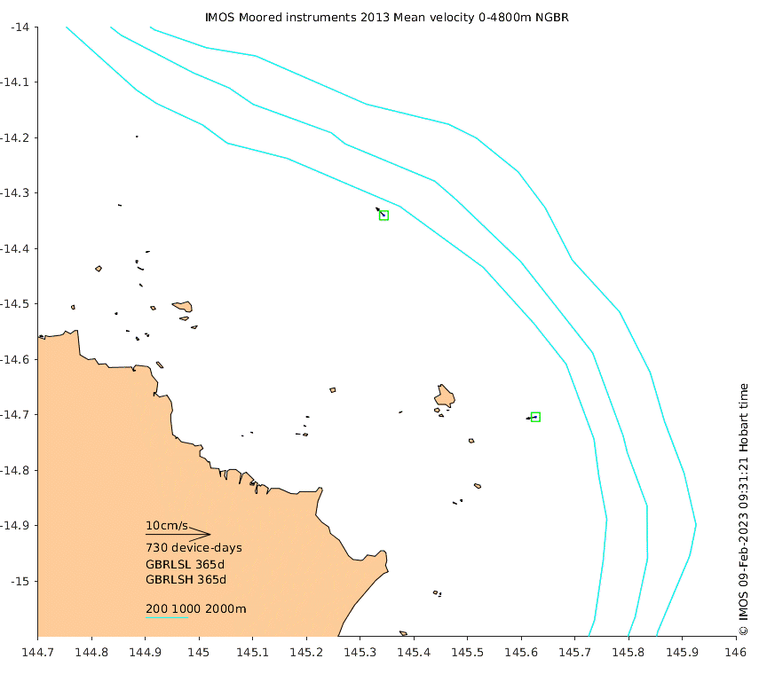 These maps show some basic analyses of the velocity data: mean and sub-tidal variance for several layers and time-windows, and tidal harmonics for the depth-average velocity using the whole record. Click through to see more detailed plots of the selected dataset or to download those data from the AODN thredds server.