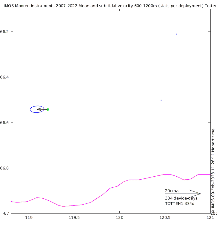 These maps show some basic analyses of the velocity data: mean and sub-tidal variance for several layers and time-windows, and tidal harmonics for the depth-average velocity using the whole record. Click through to see more detailed plots of the selected dataset or to download those data from the AODN thredds server.