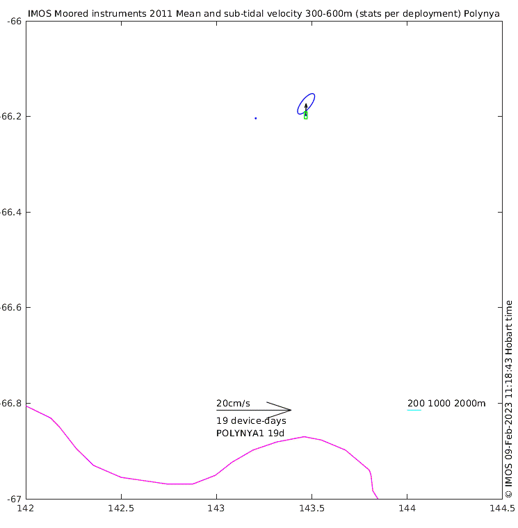 These maps show some basic analyses of the velocity data: mean and sub-tidal variance for several layers and time-windows, and tidal harmonics for the depth-average velocity using the whole record. Click through to see more detailed plots of the selected dataset or to download those data from the AODN thredds server.