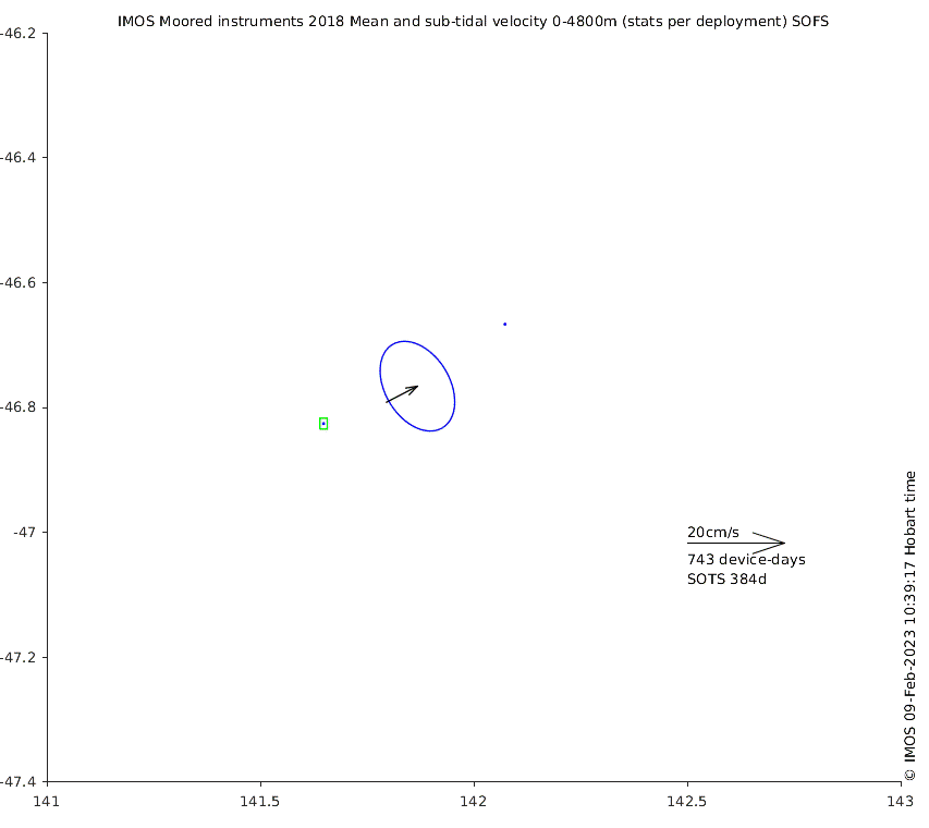 These maps show some basic analyses of the velocity data: mean and sub-tidal variance for several layers and time-windows, and tidal harmonics for the depth-average velocity using the whole record. Click through to see more detailed plots of the selected dataset or to download those data from the AODN thredds server.
