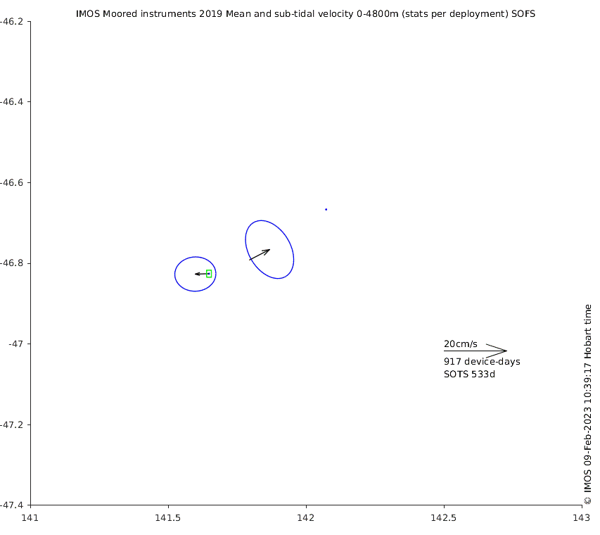 These maps show some basic analyses of the velocity data: mean and sub-tidal variance for several layers and time-windows, and tidal harmonics for the depth-average velocity using the whole record. Click through to see more detailed plots of the selected dataset or to download those data from the AODN thredds server.