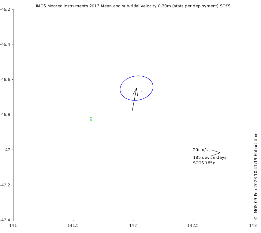 These maps show some basic analyses of the velocity data: mean and sub-tidal variance for several layers and time-windows, and tidal harmonics for the depth-average velocity using the whole record. Click through to see more detailed plots of the selected dataset or to download those data from the AODN thredds server.