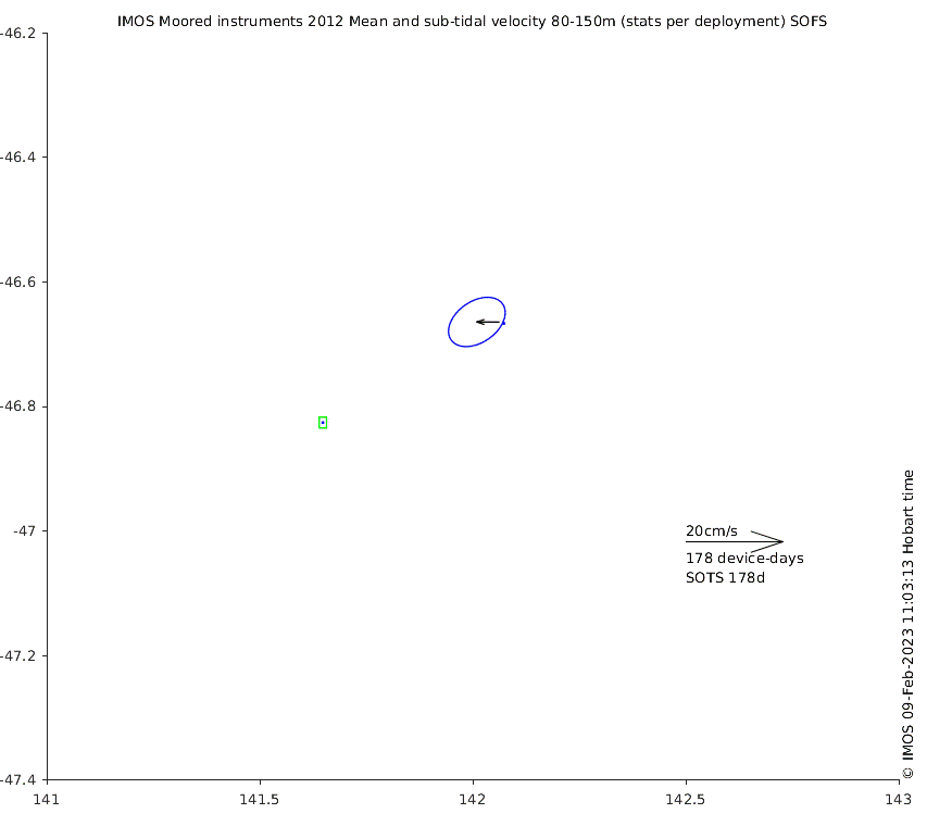 These maps show some basic analyses of the velocity data: mean and sub-tidal variance for several layers and time-windows, and tidal harmonics for the depth-average velocity using the whole record. Click through to see more detailed plots of the selected dataset or to download those data from the AODN thredds server.
