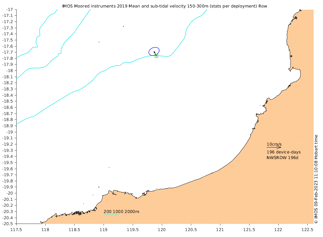 These maps show some basic analyses of the velocity data: mean and sub-tidal variance for several layers and time-windows, and tidal harmonics for the depth-average velocity using the whole record. Click through to see more detailed plots of the selected dataset or to download those data from the AODN thredds server.