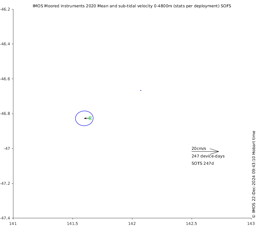 These maps show some basic analyses of the velocity data: mean (all-time in black and seasonal in colour) and sub-tidal variance for several layers and time-windows, and tidal harmonics for the depth-average velocity using the whole record. Click through to see more detailed plots of the selected dataset or to download those data from the AODN thredds server.