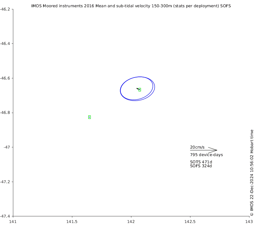 These maps show some basic analyses of the velocity data: mean (all-time in black and seasonal in colour) and sub-tidal variance for several layers and time-windows, and tidal harmonics for the depth-average velocity using the whole record. Click through to see more detailed plots of the selected dataset or to download those data from the AODN thredds server.