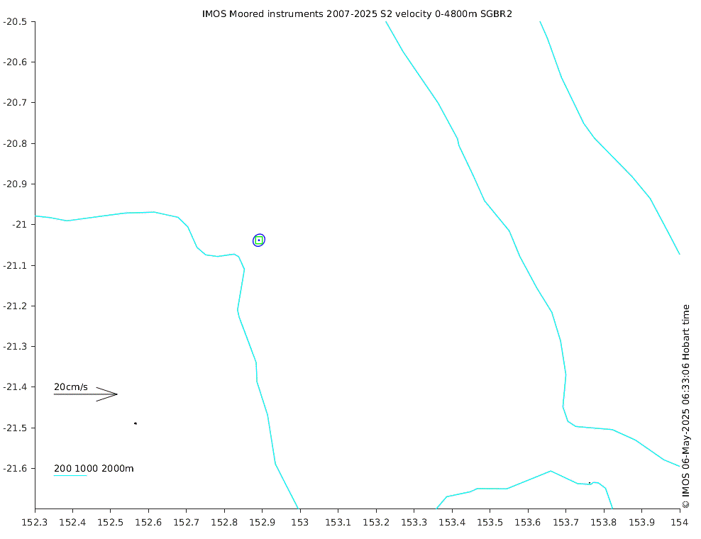 These maps show some basic analyses of the velocity data: mean (all-time in black and seasonal in colour) and sub-tidal variance for several layers and time-windows, and tidal harmonics for the depth-average velocity using the whole record. Click through to see more detailed plots of the selected dataset or to download those data from the AODN thredds server.