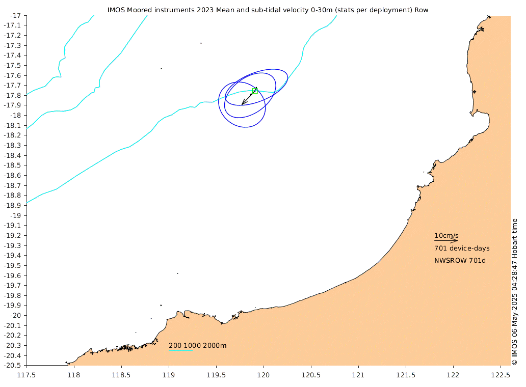 These maps show some basic analyses of the velocity data: mean (all-time in black and seasonal in colour) and sub-tidal variance for several layers and time-windows, and tidal harmonics for the depth-average velocity using the whole record. Click through to see more detailed plots of the selected dataset or to download those data from the AODN thredds server.