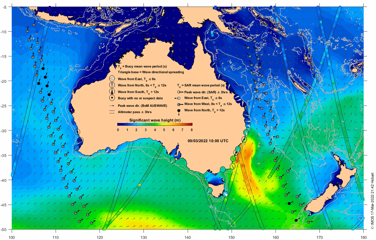 • Wave measurements from Australia's coastal wave buoy network at t0 +/- 3 hrs, extracted from AODN's near real time feed of the national waverider buoys observations.